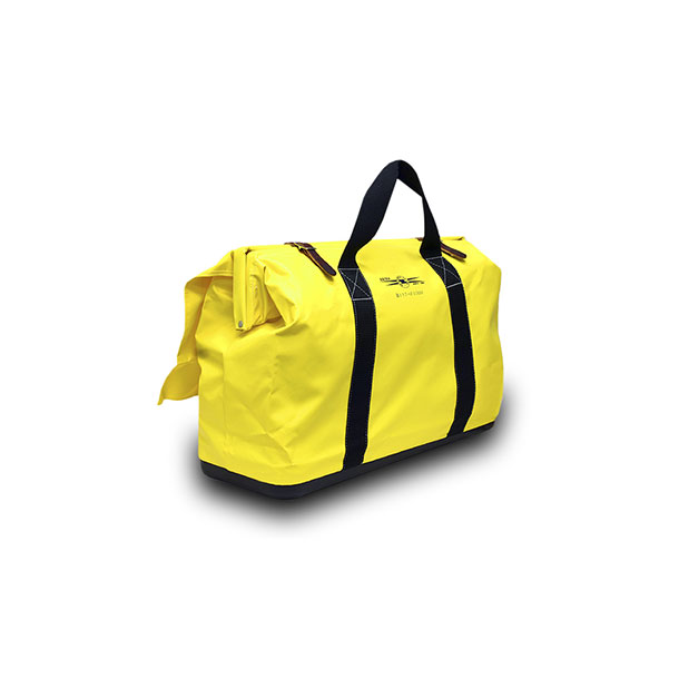 2117 series tool bags are wider than other bags and are made from canvas or heavy vinyl coated nylon which is water resistant and also very resistant to abrasion. The bottom is made from molded polymer plastic which gives additional water resistance. The 2″ web handles wrap completely around the bag. There is a weather flap that covers the top of the bag to keep water out. Box “X” stitches on the handles prevent tearing. There is one large outside pocket covered with a flap with snap fasteners. This bag also has a shoulder strap. This bag is Yellow