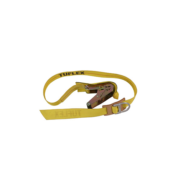 Alloy Steel ratchet attached to heavy duty nylon web strap. Heavy padding prevents damage between ratchet and boom. 2″ wide strap is equipped with alloy steel “D” ring and leather sheath for holding “D” ring in position to prevent metal contact on boom. 2″ x 4′ long.