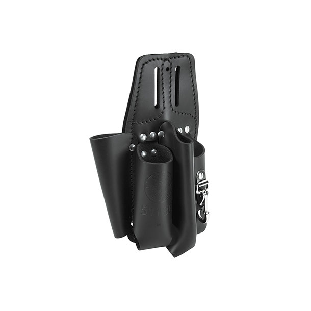 This Klein Tools 4-Tool Holder features pockets designed to accommodate pliers, folding rule, screwdriver and a wrench. The holder is designed to attach to a belt for convenient access and storage.