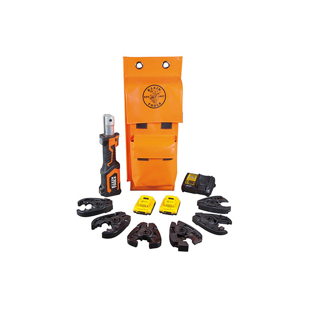 KLEIN Battery operated 7 Ton Inline Combination Cable Cutter/Crimper,Kit (includes 3 cutting heads, 3 crimping heads, bag, 2 batteries & charger)