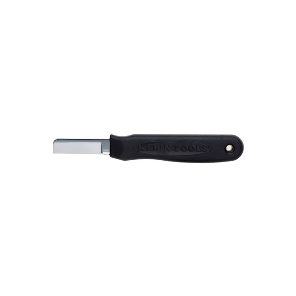 Special-purpose short blade with comfortable, full-sized, heavy-duty handle. Coping-type blade made of the finest cutlery steel, tough and carefully tempered to hold its edge. Handle is textured for comfort and firm grip. Hang hole for easy storage and portability