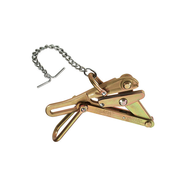 Identical to Bell-System type ”L” strand puller. Equipped with chain, toggle and shackle to keep grip from falling off the cable. For support wire .134 and larger, refer to 1659 series. Outside diameter of support wire includes thickness of polyethylene coating