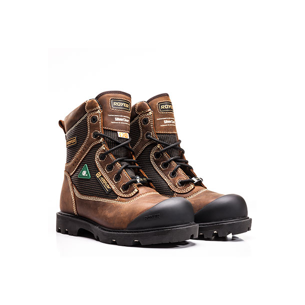 8 inch metal-free boot. Waterproof AIRFLOW membrane. Crazy-horse leather. SHIELDTEX abrasion resistant fabric. Composite protective toecap. Ultra-resistant TPU PARESHOK bumper toe. Non-metallic puncture-resistant insole. Light and flexible FLX rubber sole. Direct-attach PU midsole. SILVERCLEAR treated TAIBRELLE lining. Low density PU footbed for added comfort. Protection against electrical hazards